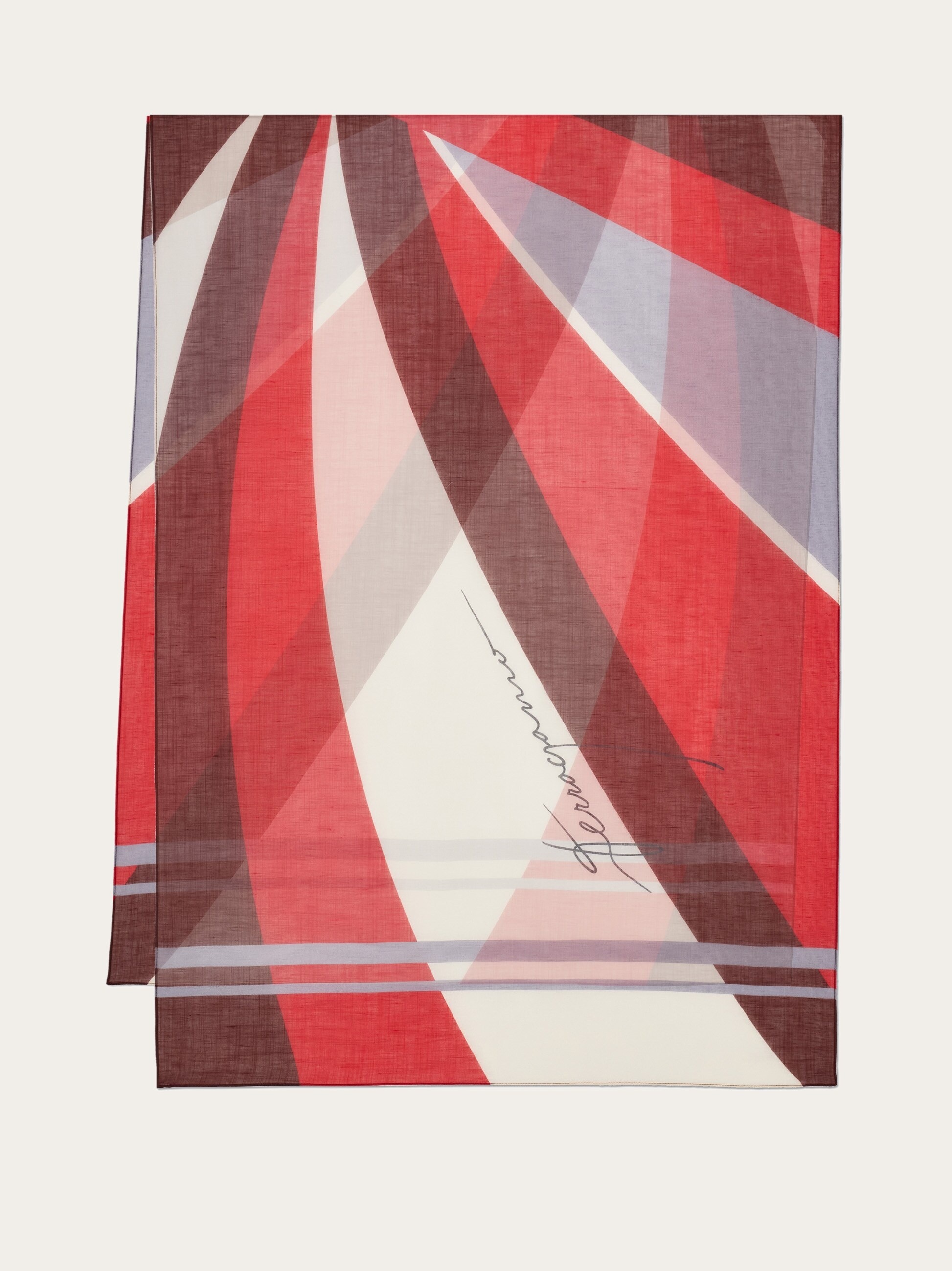Mixed linen stole featuring a multicolor graphic print signed Ferragamo. The delicate blend of cotton and linen creates a soft breathable fabric, ideal for warmer weather. - length 78.7 IN width 27.5 IN - Composition: 61% cotton, 39% linen - Made in ITALY - Product code: 520145 785254