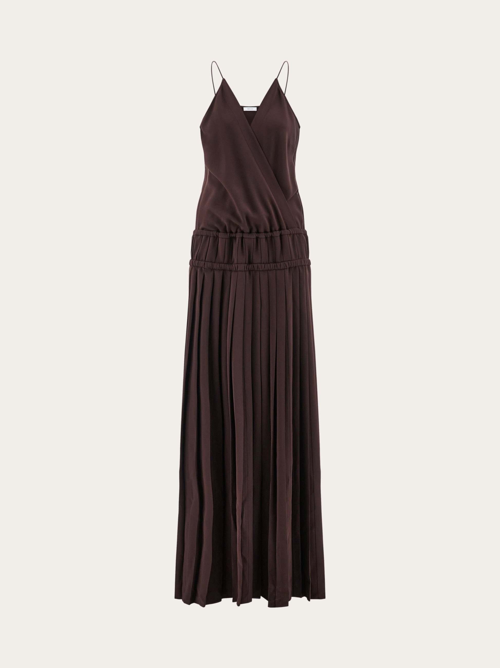 Timeless elegance with a current twist. This long vestal dress has thin cross-over shoulder straps and a deep V-neckline. A double elasticated waist that hangs softly at the hips introduces the skirt, meticulously folded into a series of pleats that enhances the goddess-like drape of this floor length masterpiece. - Composition: 97% viscose, 3% elastane - Made in ITALY - Product code: 13H314 785401
