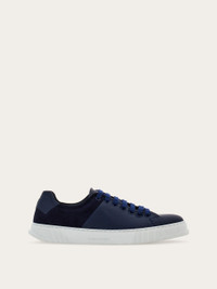 Clean lines, high quality materials and excellent workmanship define this Ferragamo low cut sneaker with an embossed signature on the tongue and large Gancio outline on the heel tab. It features a flexible rubber sole with ribbed edges and a custom tread. - Composition: calf suede - Made in ITALY - Product code: 026426 772094