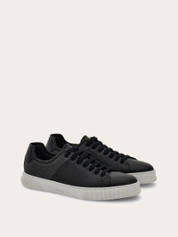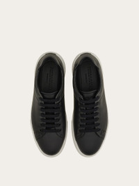 A clean aesthetic and a '90s inspired mood define this new low top sneaker by Ferragamo. The smooth calfskin upper is complemented by a jacquard fabric inlay with the Ferragamo Monogram on the back, an iconic motif that makes this shoe instantly recognizable. Elastic laces allow for a slip-on fit, while an embroidered F at the end of the lacing adds a signature touch. Anti-slip rubber sole with original tread and box construction. - Composition: calfskin and fabric - Made in ITALY - Product code: 029795 780843