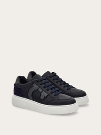 This low-top sneaker draws inspiration from 90s basketball styles. The smooth leather upper is elevated by luxurious alligator skin accents: the signature Gancini motif on the side and matching heel tab. Rubber sole with textured edges and custom tread. - Composition: calfskin and alligator skin - Made in ITALY - Product code: 02A120 787092