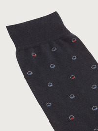 Medium length elasticated sock with Gancini details made with a jacquard weave. The contrasting tones of the design create a sophisticated pattern with lively colors. - Composition: 80% cotton, 18% polyamide and 2% elastane - Made in ITALY - Product code: 567629 719190