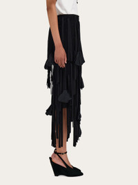 An array of tassels embellished with sophisticated flowers decorates the entire length of this midi skirt. The flowers are made and applied by hand in an intricate process that is meticulously followed to achieve a more realistic result. A masterful display of the Ferragamo creativity and craftsmanship. - Composition: 67% viscose, 33% polyester - Made in ITALY - Product code: 13H742 788292