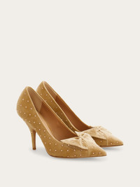 Mid heel pump with bow detail