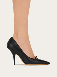 Creative prowess and masterful design brings to life a fifties inspired silhouette in a contemporary key. Made of the softest kid leather with a buttery smooth feel, this chic pump has a pointed tip and a slim strand of leather across the toes that is tied in a bow just like a delicate ribbon whose line cuts the oval opening of the shoe. Set on a 4cm kitten heel, the contrast in shapes adds a current twist to its romantic allure. - Composition: kid leather - Made in ITALY - Product code: 01J851 781859