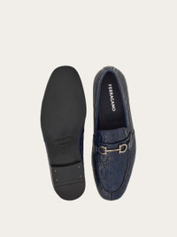 A striking slip on for the contemporary gent, the crocodile loafer. The slightly elongated toe features visible stitching around the vamp and a central slit for a more current feel. The saddle strap is pierced by a titanium finish Gancio buckle at the side, and a slim leather sole ensures flexible movement. - Composition: crocodile - Made in ITALY - Product code: 029817 778980