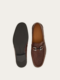 A luxurious take on the classic Ferragamo loafer. The elegant line features a ruthenium tone Gancio bit across the instep with central tonal bit for a contemporary finish. Flexible leather sole. This shoe is made with the "Tubular" technique, an exclusive method applied by high end shoemakers, whereby the sole is hand-sewn to ensure a supple, flexible finish. - Composition: alligator - Made in ITALY - Product code: 02A709 762342