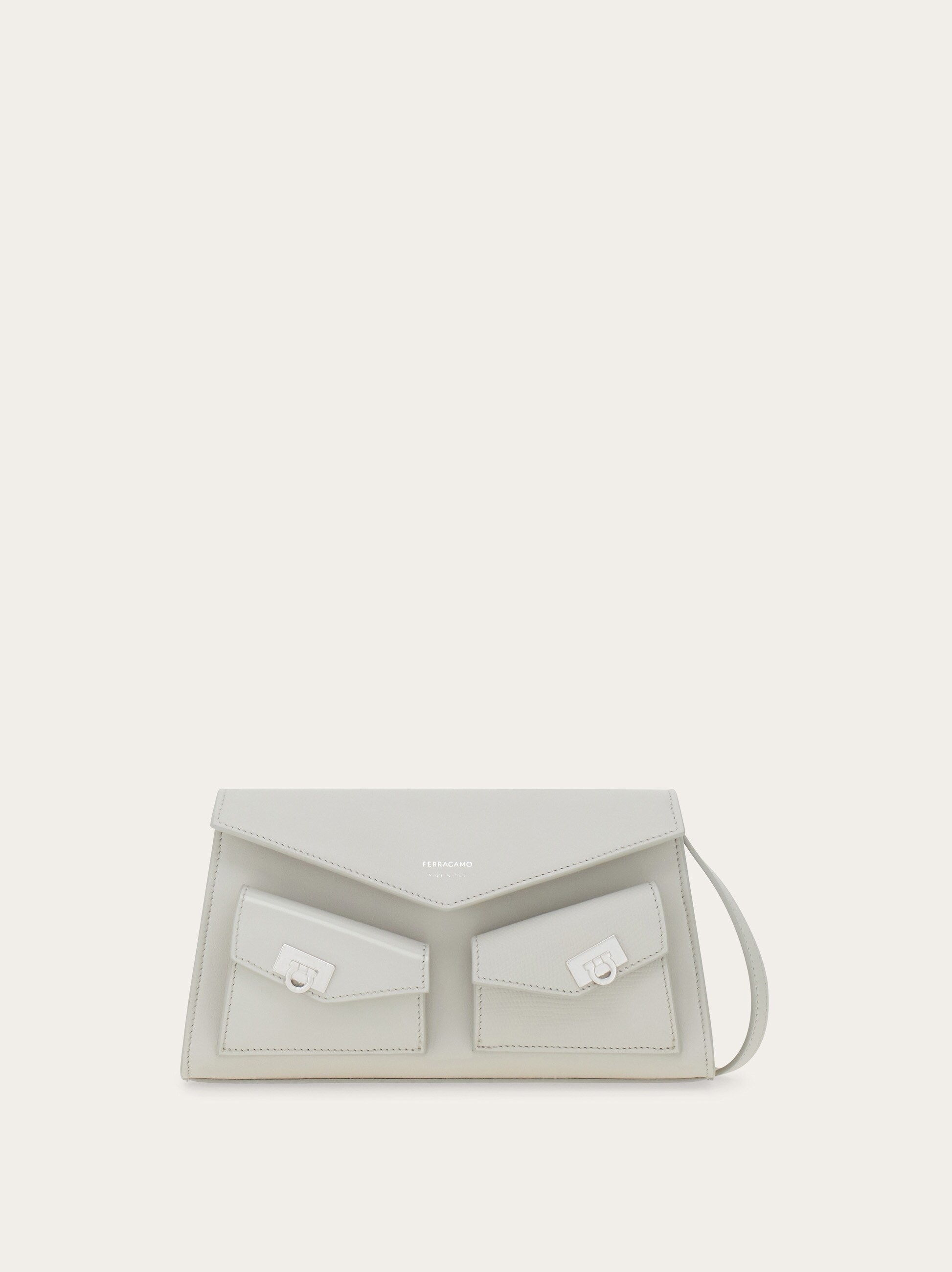 Compact yet statement-making, the Hug multipocket mini bag plays with sharp geometry and refined contrast accents. Designed for effortless versatility, it can be worn over the shoulder or crossbody with its adjustable, detachable strap—perfect for life on the go. - height 5.1 IN length 8.6 IN width 2.3 IN - Composition: calfskin - Mini - Made in ITALY - Product code: 220916 785903