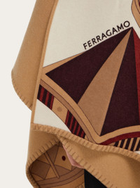 Versatile and refined, this cashmere-blend cape is one of the most popular accessories with Ferragamo lovers. The silk twill interior is decorated with the Nadir pattern, a sophisticated foulard print with geometric elements and architectural details inspired by Renaissance aesthetics. Handmade blanket stitch details and a shawl neckline complete the design. - length 57.0 IN width 57.0 IN - Composition: 60% cashmere and 40% wool - Made in ITALY - Product code: 320963 779395