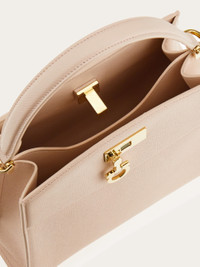 The Studio Box bag, a refined silhouette with a sophisticated appeal. In-keeping with the original style, this compact iteration features the iconic Gancio slider clasp on the front panel in a golden hue, and a lined interior with two compartments with inner zip pocket. A removable cross body strap offers a hands-free styling option. - A) Height 7.2 IN B) Length 9.4 IN C) Width 4.7 IN - Composition: hammered calfskin - Handle drop: 4.3 in/11 cm - Extra Small - Made in ITALY - Product code: 21A210 786123