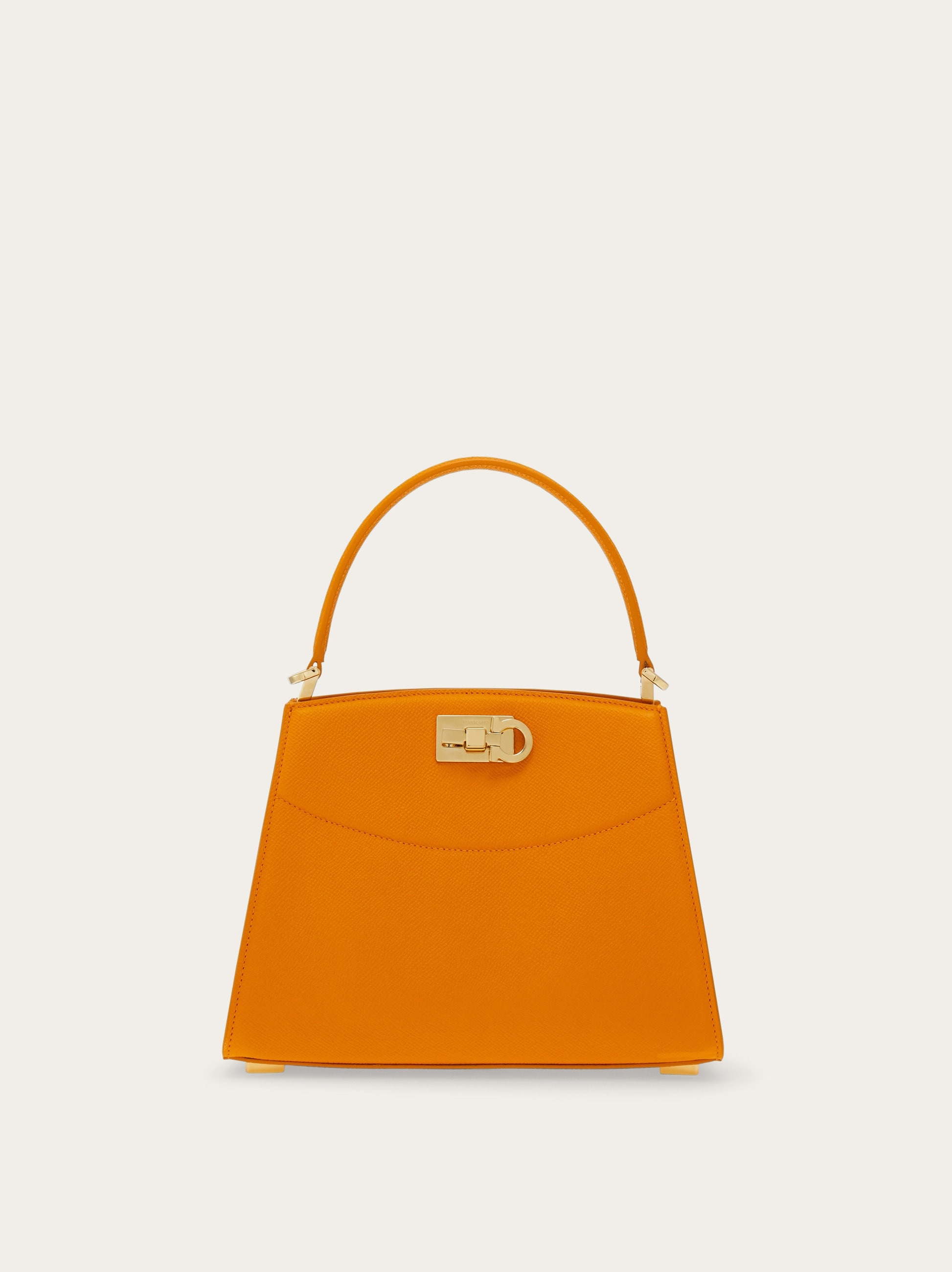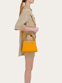 The Studio Box bag, a refined silhouette with a sophisticated appeal. In-keeping with the original style, this compact iteration features the iconic Gancio slider clasp on the front panel in a golden hue, and a lined interior with two compartments with inner zip pocket. A removable cross body strap offers a hands-free styling option. - A) Height 7.2 IN B) Length 9.4 IN C) Width 4.7 IN - Composition: hammered calfskin - Handle drop: 4.3 in/11 cm - Extra Small - Made in ITALY - Product code: 21A210 786124