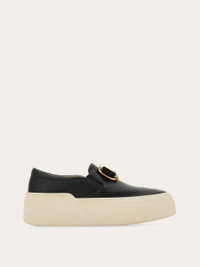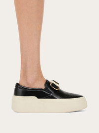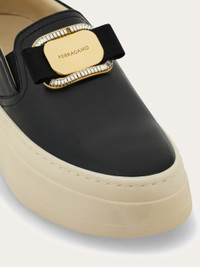 Inspired by the classic skate shoe, this new Ferragamo slip on is original and full of character. The upper is cut from the softest lambs' leather, and features a golden Vara buckle with tonal gros grain bow. Elastic inserts at the sides and the padding around the opening ensure a comfort fit, echoed by the ultra-light rubber sole with custom tread. - Composition: lambskin - Made in ITALY - Product code: 030606 781490