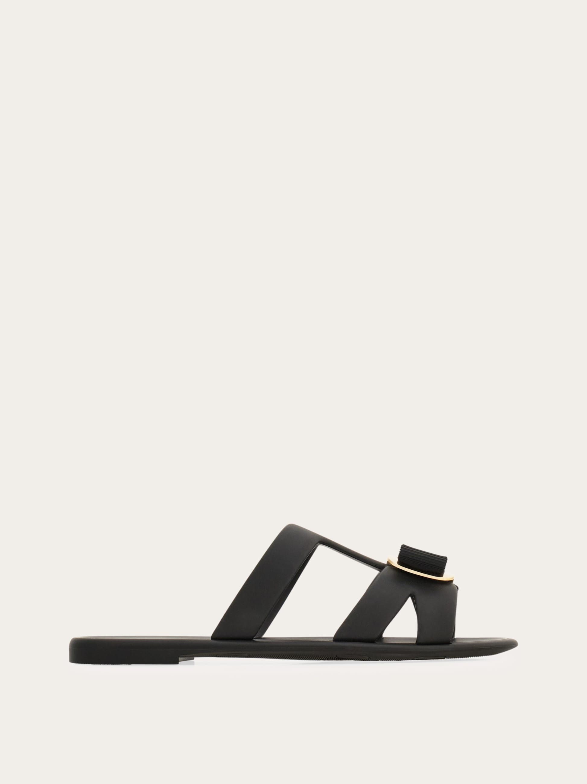 Swish. The perfect sliders for summer days, these rubber Ferragamo slip Ons are playful and iconic. Available in bright seasonal hues, they are made of rubber, perfect for splashing by the pool. The gros-grain look Vara bow is held by a golden Gancio buckle for a high end appeal. - Composition: rubber - Made in ITALY - Product code: 01J325 779972