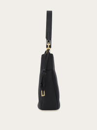 Clean lines and iconic accents characterize the new Ferragamo Hobo bag. This medium iteration in hammered calfskin lays softly against the body. It opens via a metallic zip to reveal a canvas-lined interior. Attach the leather string with golden charm to extend the custom jacquard shoulder strap. - A) Height 10.8 IN B) Length 12.0 IN C) Width 3.5 IN - Composition: hammered calfskin - Handle drop: 10.2 in/26 cm - Medium - Made in ITALY - Product code: 21A170 785028
