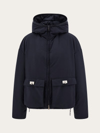 Trendy yet timeless, this new padded jacket is a savvy balance of casual style with a refined appeal. The sleek silhouette features a high collar with hood and a two-way zip runs along the placket. Note the large applied pockets detailed with leather Hug buckles. - Composition: 100% polyamide - Made in ITALY - Product code: 13I013 790896