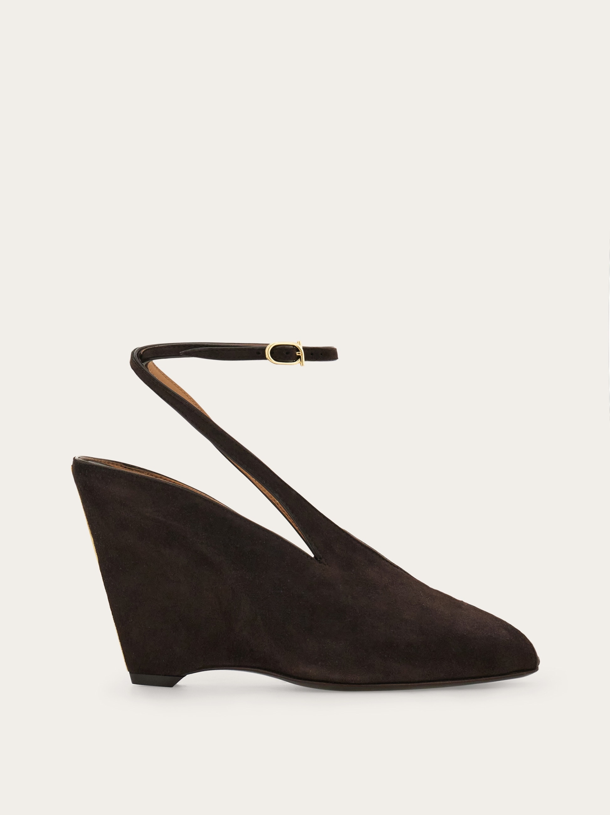 With its retro sophistication and contemporary style this new wedge sandal is truly striking. The patent leather upper features a peep toe and slim ankle strap for stability and a sensual detail. Covered wedge heel. - Composition: calfskin suede - Made in ITALY - Product code: 01K873 788955