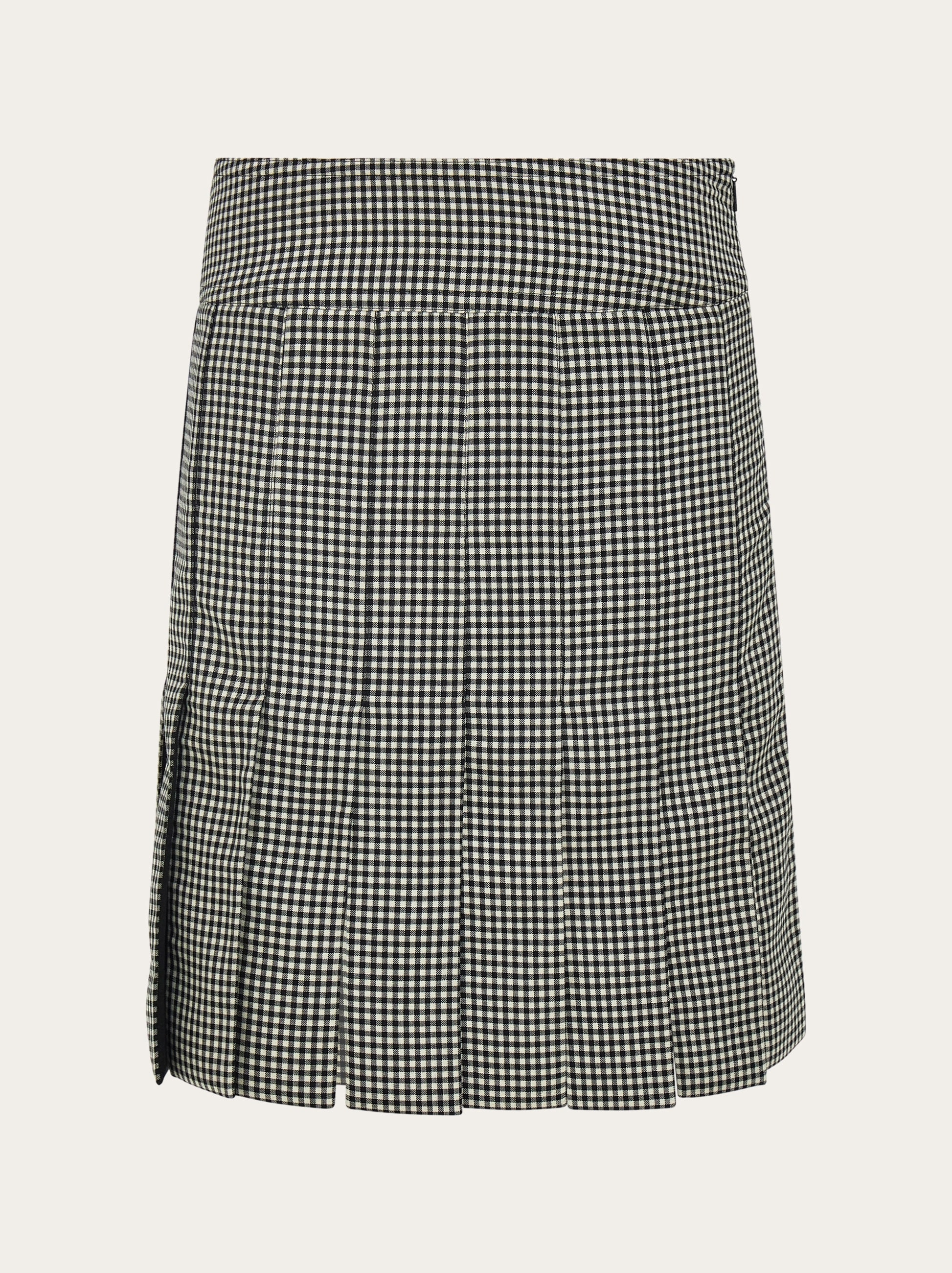 A high fashion take on a classic, this gingham miniskirt features a series of pleats that open from half way along their length. This unique twist echoes a preppy appeal. The garment is lined. - Composition: 98% pure virgin wool, 2% silk - Made in ITALY - Product code: 13H099 785203