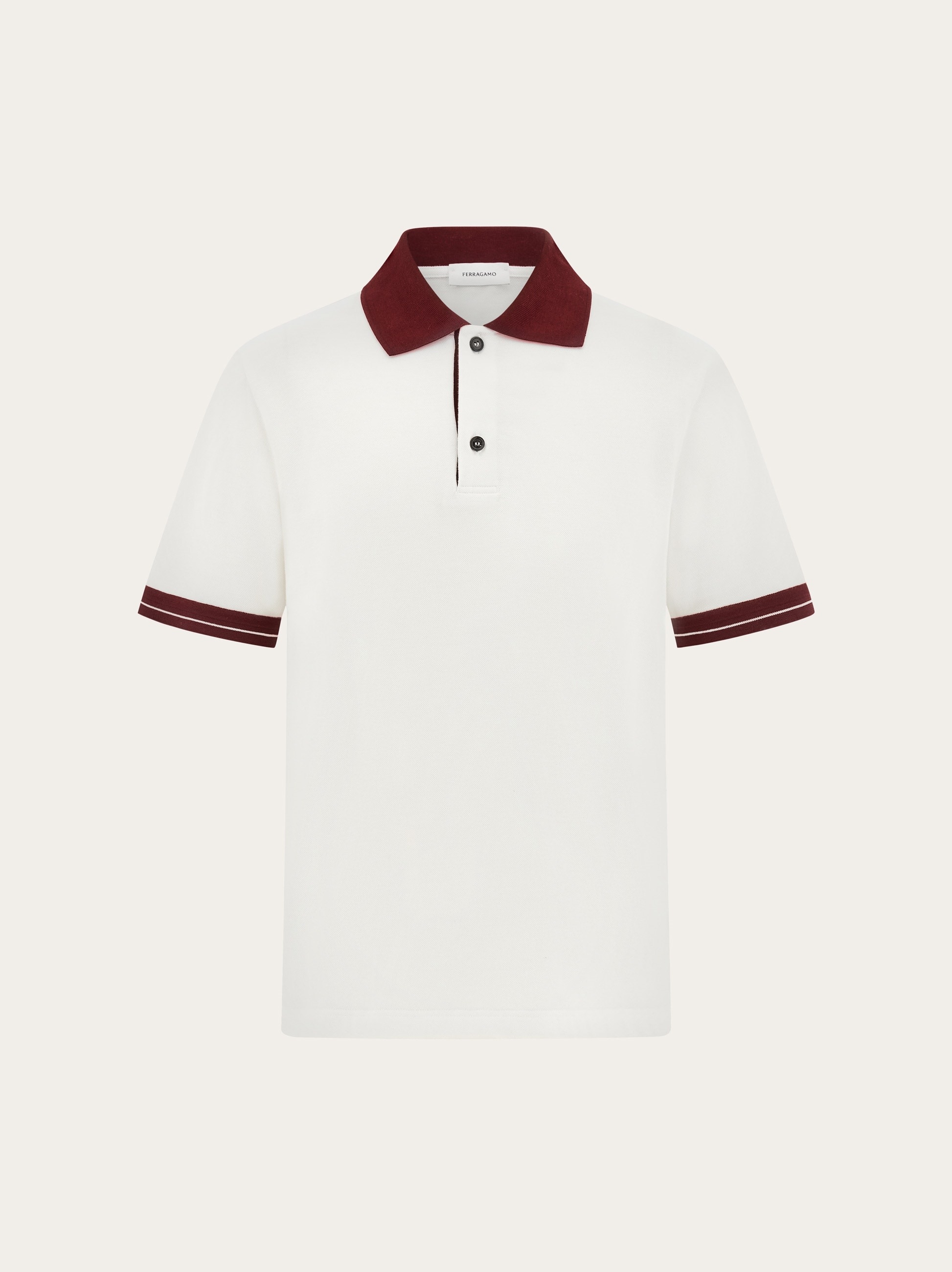A classic silhouette with an urban appeal, this new Ferragamo polo shirt is made of pure soft cotton. The knitted three button collar opens to reveal an embroidered signature along the placet, and knitted cuffs feature a slim stripe through the middle. - Composition: 100% cotton - Made in ITALY - Product code: 122607 781017