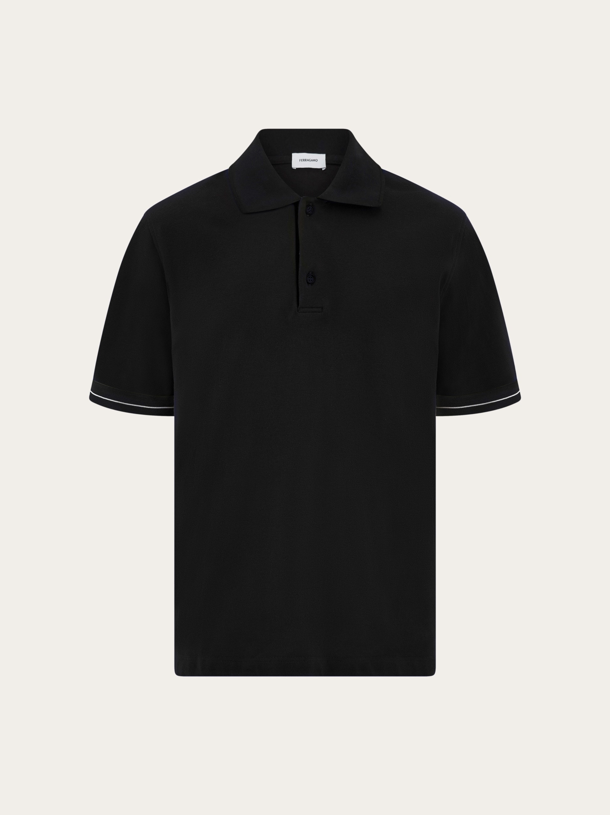 A classic silhouette with an urban appeal, this new Ferragamo polo shirt is made of pure soft cotton. The knitted three button collar opens to reveal an embroidered signature along the placet, and knitted cuffs feature a slim stripe through the middle. - Composition: 100% cotton - Made in ITALY - Product code: 122607 781918