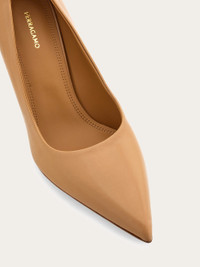 Feminine and glam with a touch of grit, this new Ferragamo pump is cut from soft, sumptuous calfskin leather, with a pointed tip and squared neck to echo its contemporary sensuality. The 7cm heel is just the right height for day to night looks, with a double Gancio above it for an iconic finish. A golden F is placed under the sole. - Composition: goatskin - Made in ITALY - Product code: 01J047 776894