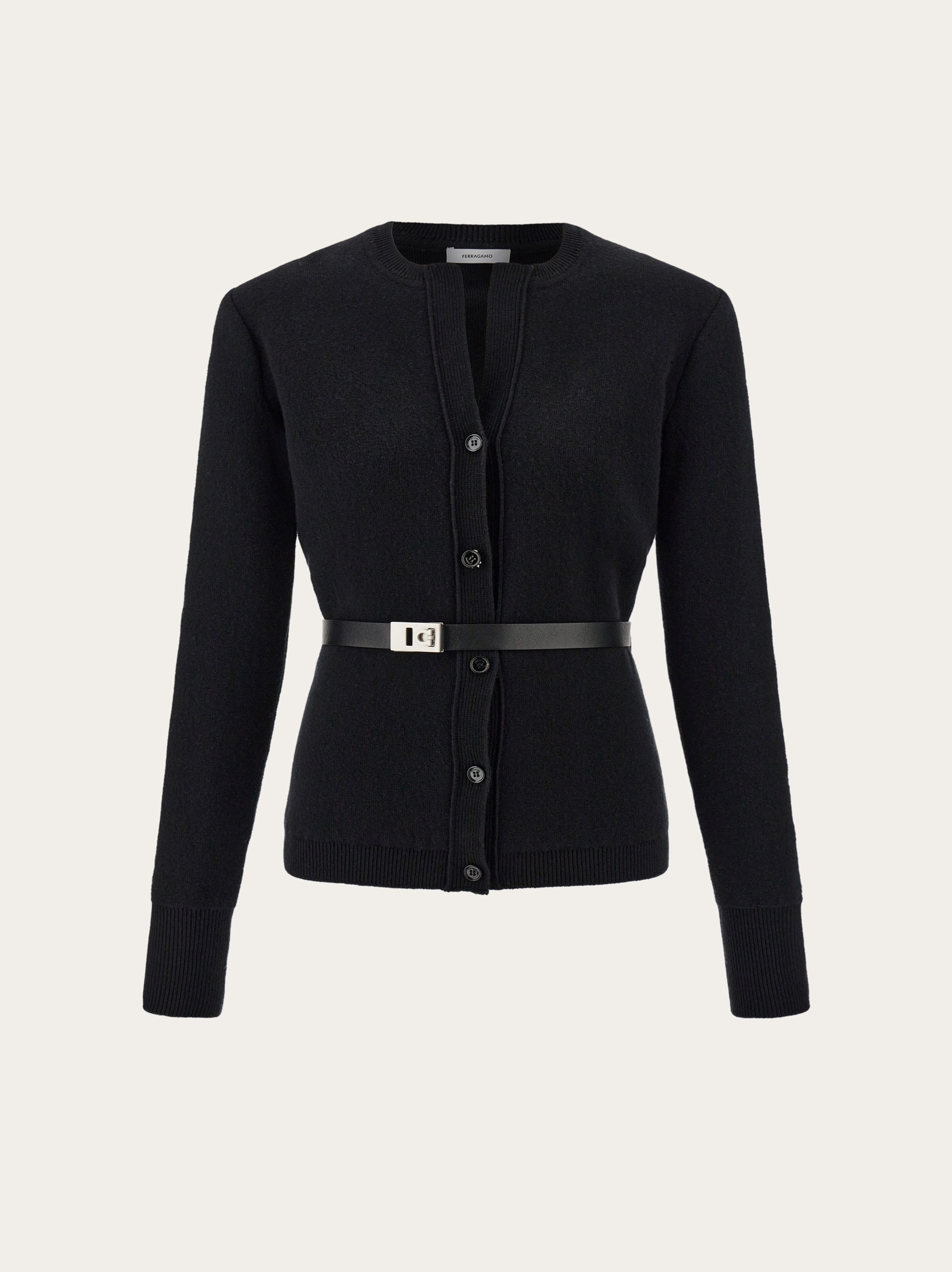 Pure wool cardigan with leather belt