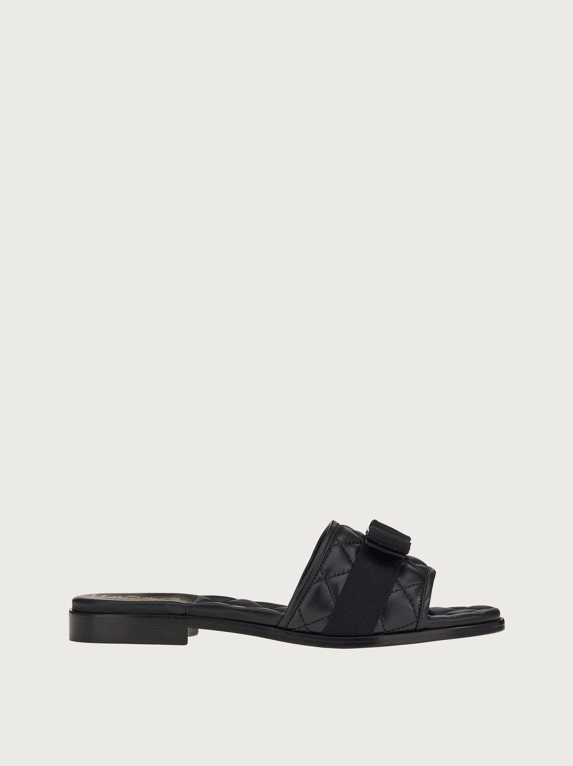 Soft nappa lambskin sliders with padded-effect geometric quilting. Wide strap over the toes with the Vara bow and gros-grain ribbon. - Composition: nappa - Made in ITALY - Product code: 01D474 753739