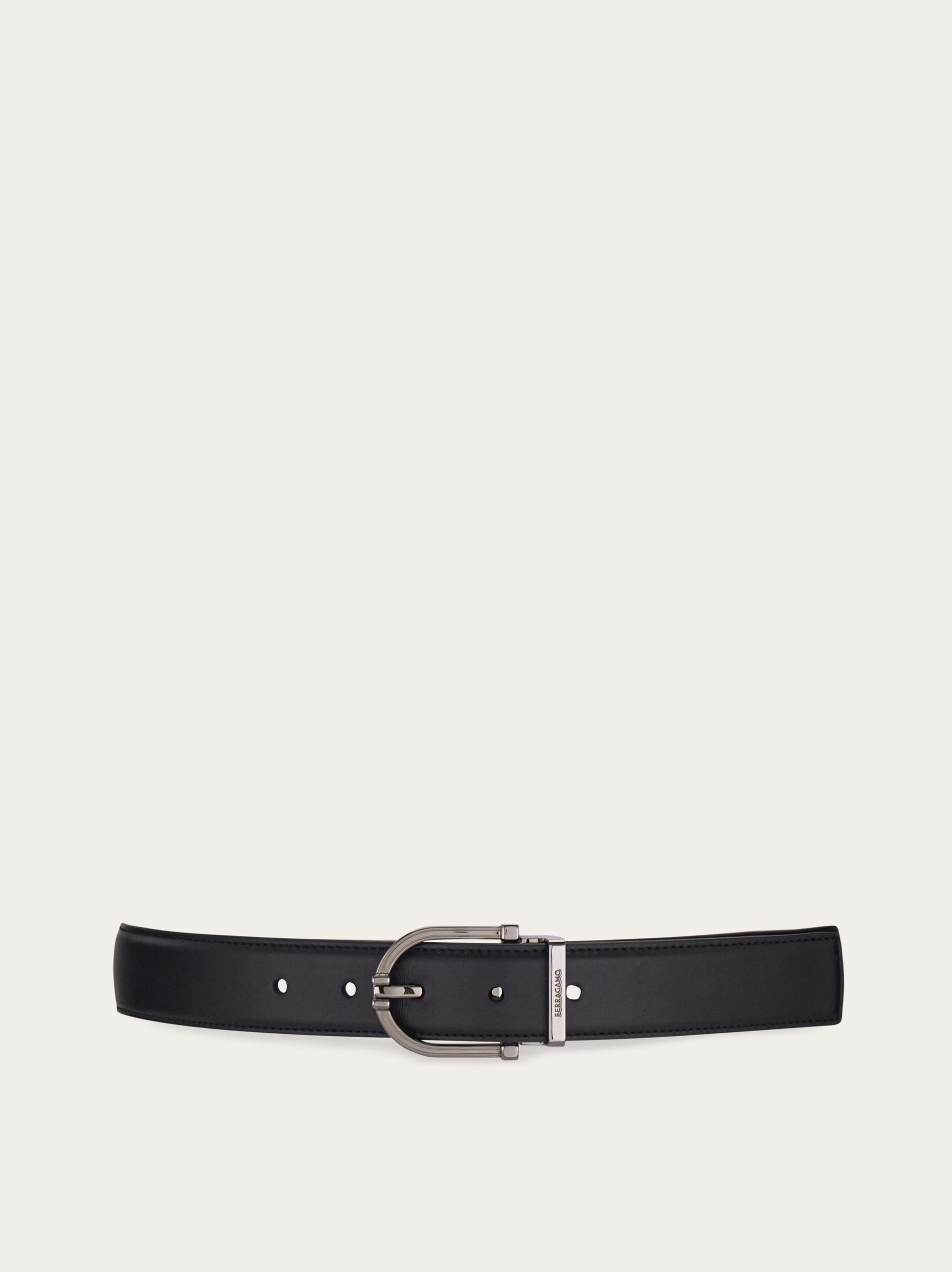 A soft calfskin belt with a reversible two-tone design for effortless versatility. The geometric ruthenium-finish buckle is accented with an engraved signature on the loop for a refined touch. The adjustable length allows for a more personalized fit and style. We invite you to check our size guide for more information. - height 1.2 IN - Composition: calfskin - Made in ITALY - Product code: 670469 786424