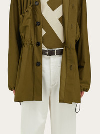 The elegant buckle of this new Ferragamo belt sets a sophisticated tone. The calfskin shaft is reversible, with a natural texture on one side, and hammered finish on the other for a rich finish that is two belts in one. The length is adjustable. Please see the size guide for further details. - height 1.2 IN - Composition: smooth and hammered calfskin - Made in ITALY - Product code: 670419 780451