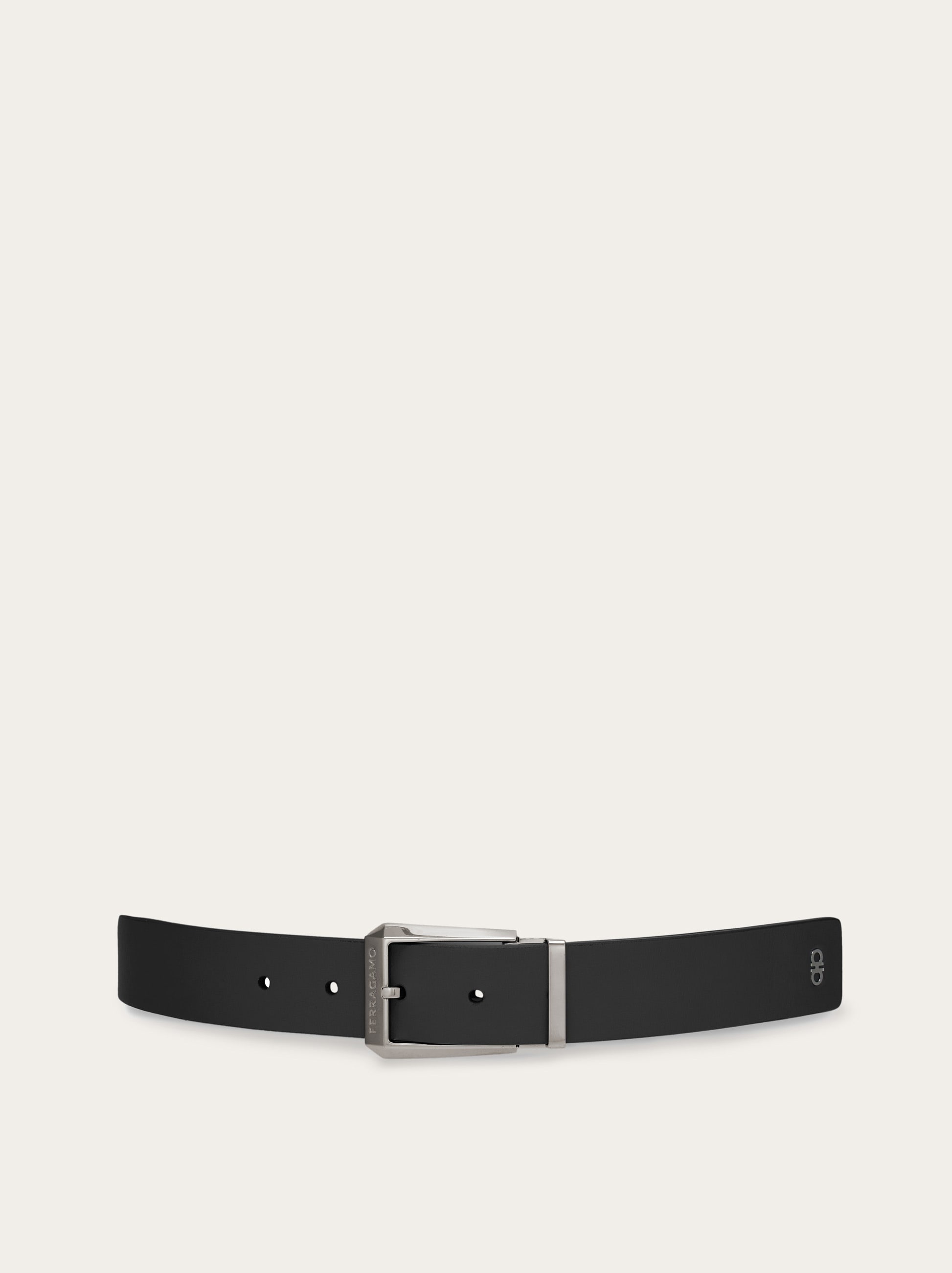 This reversible, two-tone belt crafted from calfskin brings a new take on contemporary formality with its uneven natural-grained calfskin on both sides. The geometric-trim buckle is decorated by the engraved logo, while the Gancini silhouette appears incorporated on the bottom of the shaft, like a refined inlay. This adjustable-length model offers a custom fit and style. Please check our size guide for more information. - height 1.2 IN - Composition: calfskin - Made in ITALY - Product code: 670374 775804