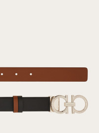 A cool evolution of the brand’s most iconic belt, featuring a reversible two-tone design for customizable styling. The Gancini-adorned buckle showcases a distinctive hammered texture with a palladium finish. With a 2.5 cm width, it adds an extra touch of femininity. The adjustable length allows for a more personalized fit and style. We invite you to check our size guide for more information. - height 0.9 IN - Composition: calfskin - Made in ITALY - Product code: 230419 786302