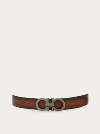A timeless staple of the masculine wardrobe, reimagined in today’s most refined tones: this belt is crafted from calfskin hammered and buffed by hand for a shaded, two-tone effect. The double Gancini buckle and reversible construction make it a surprisingly versatile piece. The adjustable length allows for a more personalized fit and style. We invite you to check our size guide for more information. - height 1.3 IN - Composition: hammered calfskin - Made in ITALY - Product code: 679710 791932