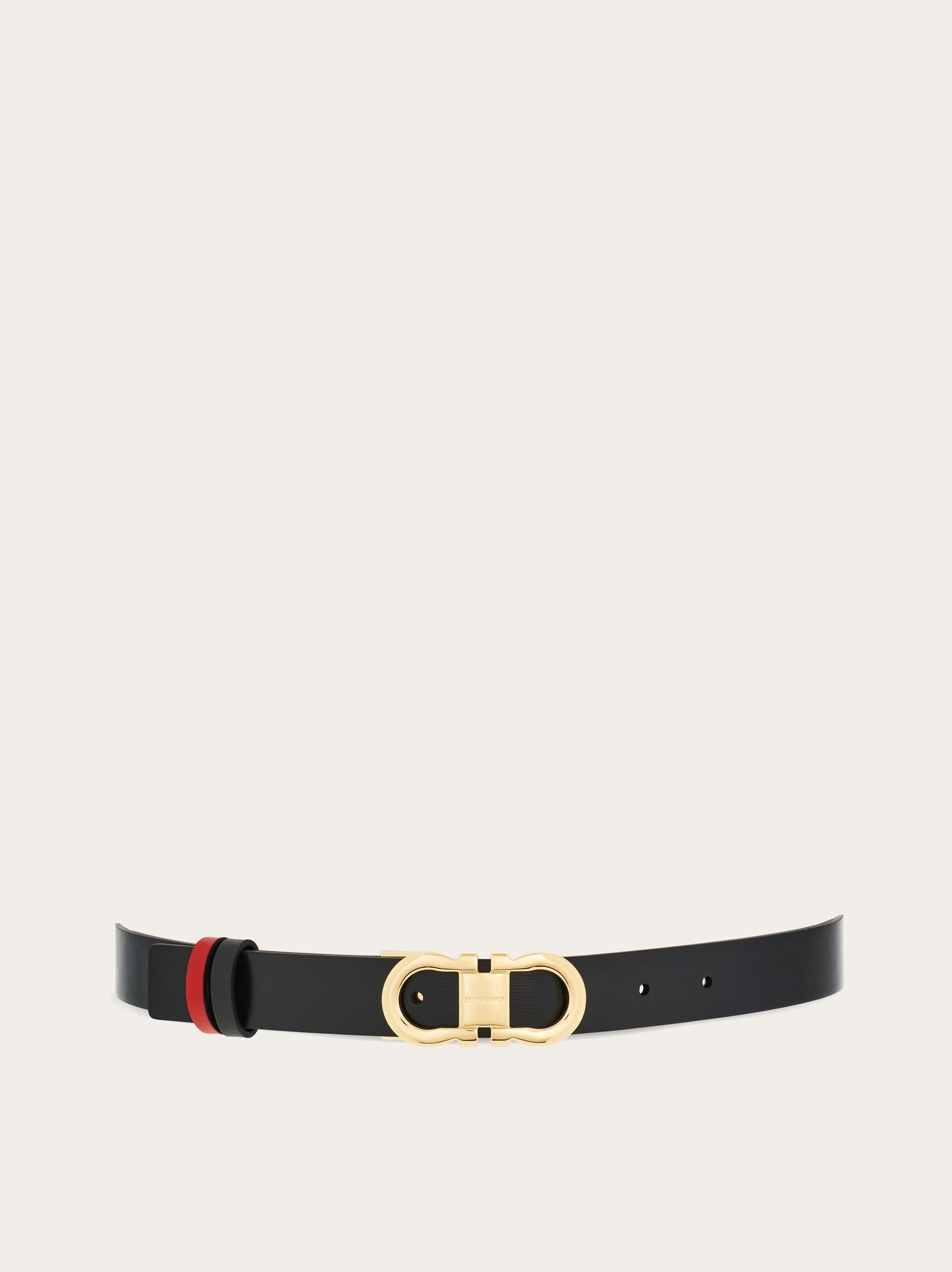 Subtle for an extra touch of femininity, reversible for use that transcends everyday looks. Smooth calfskin belt with reversible construction, adjustable length and two-tone design. The iconic Gancini buckle in a gold finish is offered with a squared profile for a graphic and more current note. The adjustable length allows for a more personalized fit and style. We invite you to check our size guide for more information. - height 0.9 IN - Composition: calfskin - Made in ITALY - Product code: 230294 771068
