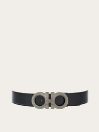 The bold touch to define your look: new reversible belt from Ferragamo, with the ruthenium-finish Gancini buckle boasting an XL profile. The 4.0-cm strap is crafted from smooth, soft calfskin with two-tone sides for limitless versatility. The adjustable length ensures the perfect fit every time. The adjustable length allows for a more personalized fit and style. We invite you to check our size guide for more information. - height 1.5 IN - Composition: calfskin - Made in ITALY - Product code: 670270 770715