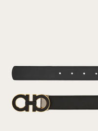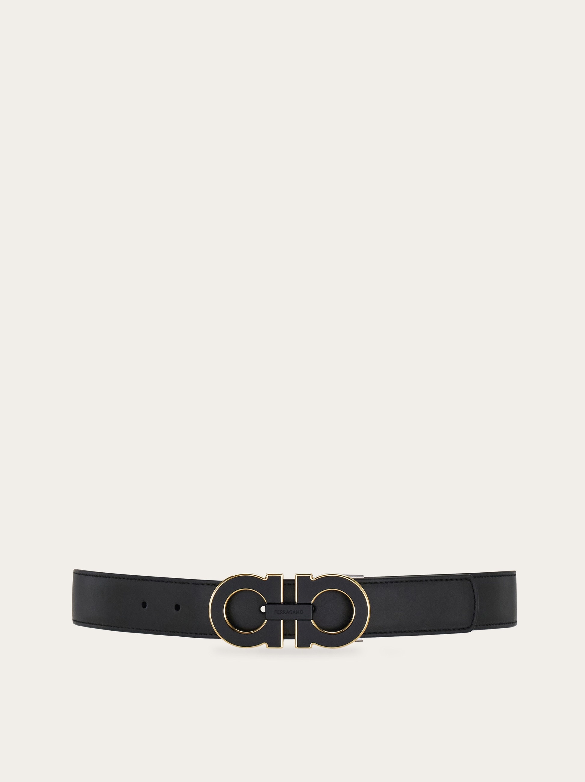 A contemporary take on the classic Ferragamo belt, featuring contrast stitching for a relaxed feel and a reversible design for ultimate versatility. The tonal resin Gancini buckle is accented with a contrasting gold border for a refined finish. The adjustable length allows for a more personalized fit and style. We invite you to check our size guide for more information. - height 1.2 IN - Composition: calfskin - Made in ITALY - Product code: 670460 786992
