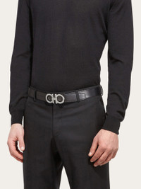 This Gancini belt offers a modern update on the timeless wardrobe staple. The reversible design ensures it is as versatile as it is refined. Notice the metal buckle in a polished ruthenium-tone finish that lends it an effortlessly chic touch. The adjustable length allows for a more personalized fit and style. We invite you to check our size guide for more information. - height 1.3 IN - Composition: calfskin - Made in ITALY - Product code: 679710 686671