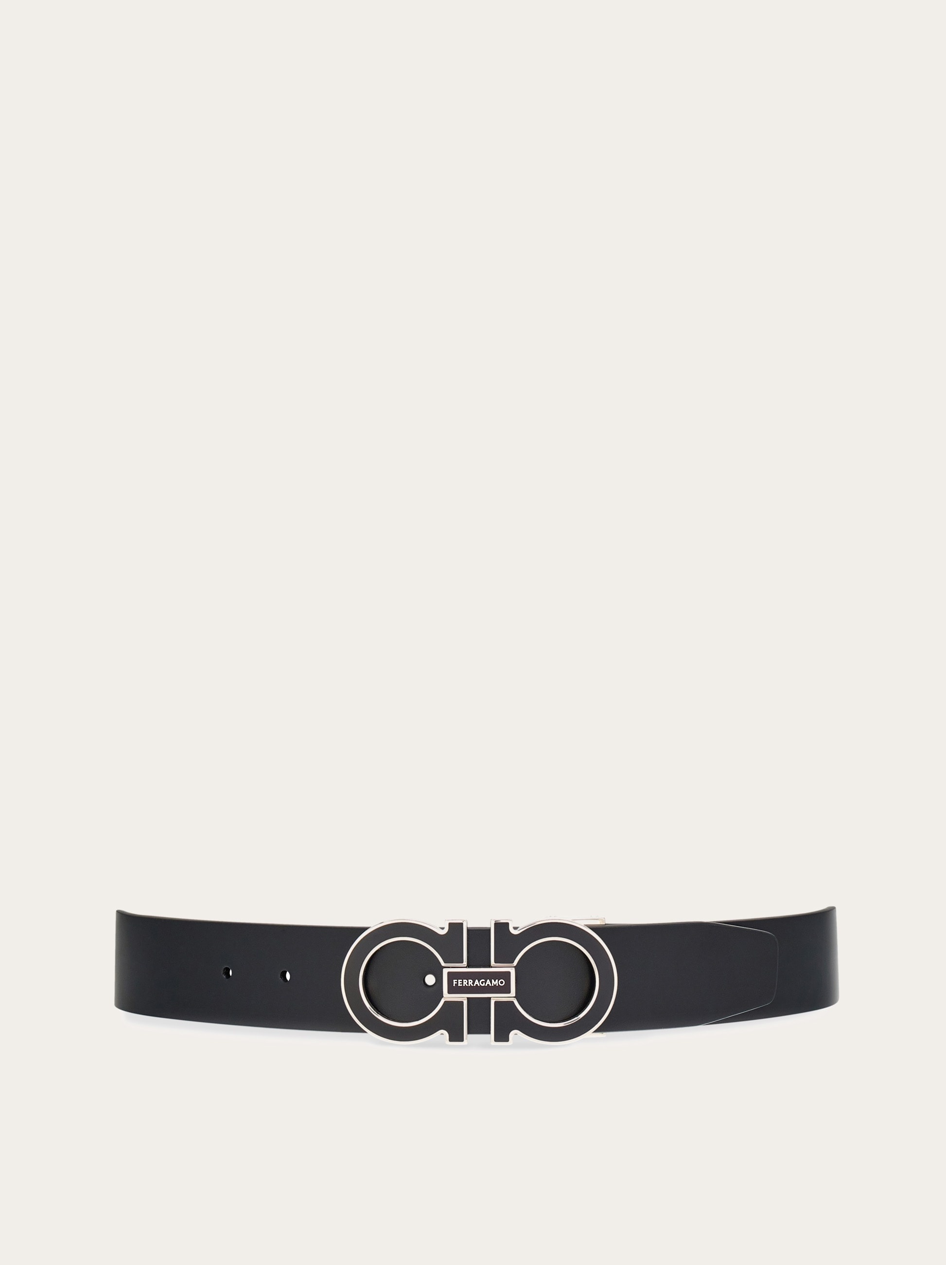 With its iconic lines and metropolitan look, this reversible, two-tone belt is crafted from smooth calfskin. The Gancini buckle with tonal lacquered insert adds a distinctive detail, perfect for everyday looks. This adjustable-length model offers a custom fit and style. Please check our size guide for more information. - height 1.3 IN - Composition: calfskin - Made in ITALY - Product code: 670384 776399