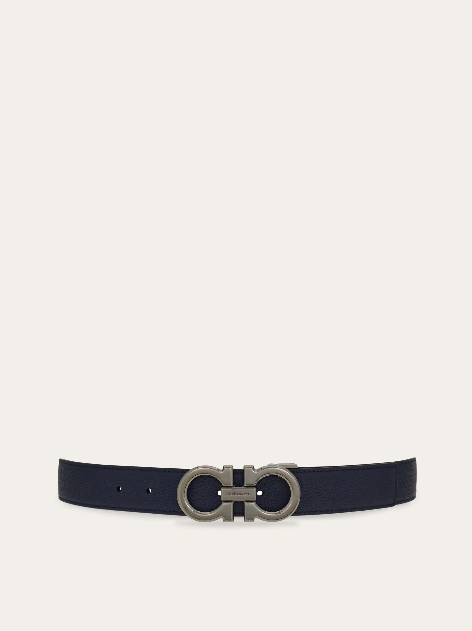 Versatile and cool with a current appeal, this new Ferragamo belt has a two-tone reversible shaft made of hammered calfskin leather with a rich, pebbled texture. The different colors on each side open up several styling options, and the tonal Gancio buckle has a central signature. The adjustable length allows for a more personalized fit and style. We invite you to check our size guide for more information. - height 1.1 IN - Composition: hammered calfskin - Made in ITALY - Product code: 670428 790557