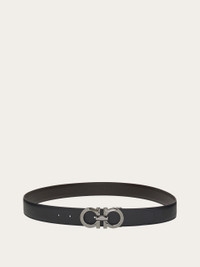 A modern take on the Maison's most recognizable belt, with a reversible two-tone leather strap, in a delicately hammered finish. The ruthenium Gancini has a faceted finish, for a refined touch. The adjustable length allows for a more personalized fit and style. We invite you to check our size guide for more information. - height 1.3 IN - Composition: hammered calfskin - Made in ITALY - Product code: 67A161 725421