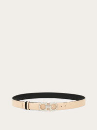 Stylish and endlessly versatile, this reversible two-tone belt is a go-to accessory for effortless everyday dressing. Its 2.5 cm width makes it the perfect match for dresses, skirts, or tailored pants, while the palladium Gancini buckle adds a signature touch of sophistication. The adjustable length allows for a more personalized fit and style. We invite you to check our size guide for more information. - height 0.9 IN - Composition: calfskin - Made in ITALY - Product code: 23A565 786257