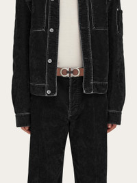 Luxurious with an urban edge, this new Ferragamo belt is made of soft calfskin leather. One side is printed with a lizard motif, and the other, in a contrasting tone, has a smooth, supple finish. The Gancio buckle with contrasting central bit adds an original twist. The length is adjustable. Please see the size guide for further details. - height 1.3 IN - Composition: calfskin - Made in ITALY - Product code: 670391 781687