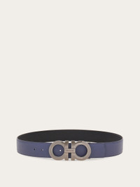 This reversible two-tone belt is designed for versatile styling, featuring a Gancini buckle in a sleek ruthenium finish. The strap contrasts in color and texture, offering a dynamic, customizable look. The adjustable length allows for a more personalized fit and style. We invite you to check our size guide for more information. - height 1.5 IN - Composition: calfskin - Made in ITALY - Product code: 670270 786004