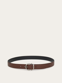 Contemporary elegance with a casual edge: a new belt crafted from soft hammered calfskin, with a stitched strap and reversible two-tone construction for many styling options. The palladium-finish Gancini buckle and the custom metal belt loop completes the design with an iconic edge. This adjustable-length model offers a personalized fit and style. The adjustable length allows for a more personalized fit and style. We invite you to check our size guide for more information. - height 1.1 IN - Composition: hammered calfskin - Made in ITALY - Product code: 670302 771976