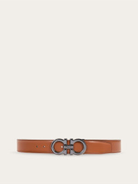 Elegant yet informal, this reversible and adjustable belt is made of supple calfskin, with a natural texture enhanced by the vegetable-based aniline treatment. The contrasting shades on both sides offer multiple styling possibilities. The Gancini buckle with ruthenium finishing confirms a contemporary look. The adjustable length allows for a more personalized fit and style. We invite you to check our size guide for more information. - height 1.3 IN - Composition: calfskin - Made in ITALY - Product code: 679710 766126