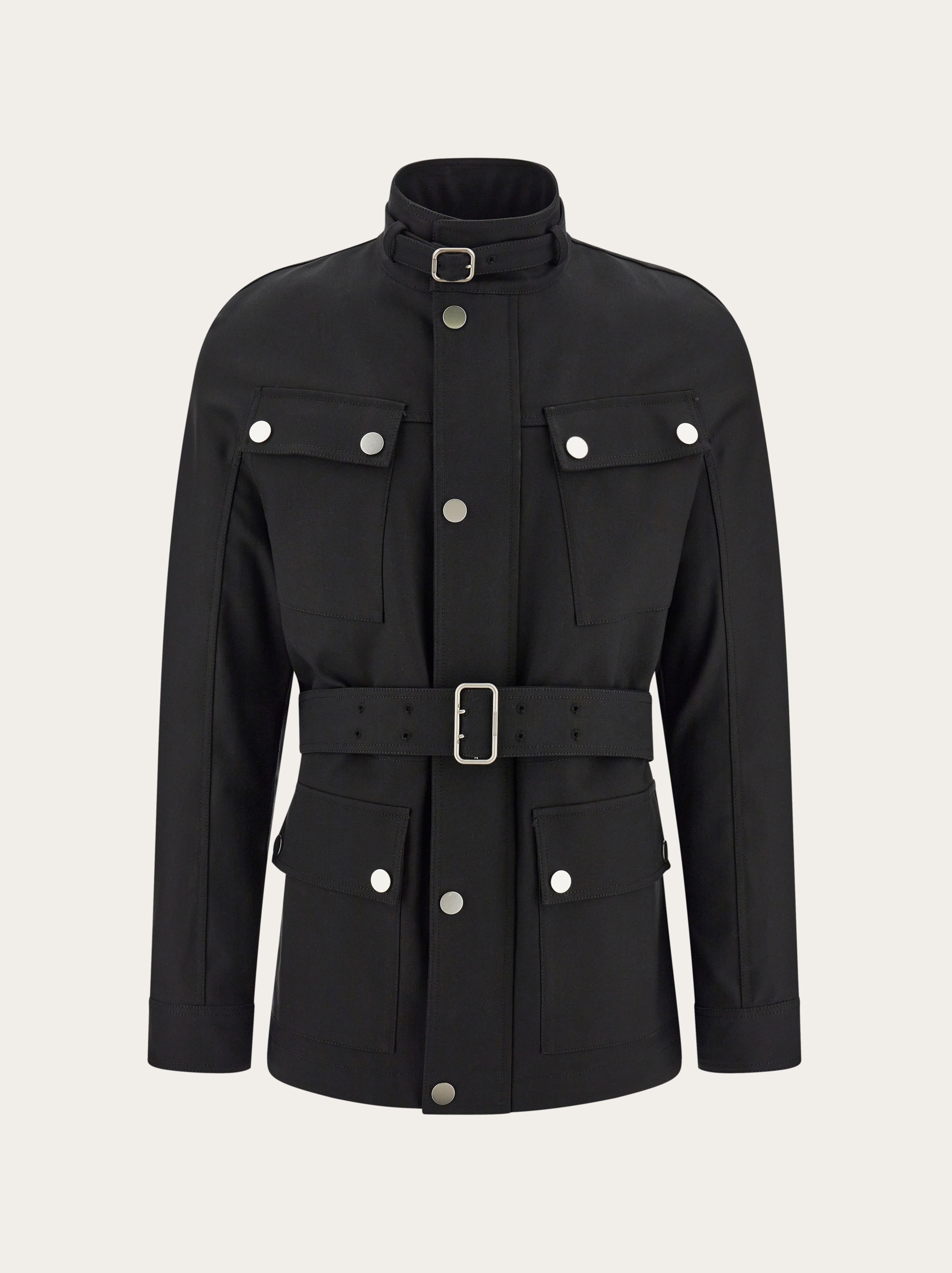 A sophisticated evolution of the safari jacket in pure cotton, defined by an interplay of satin-finished metal buttons with a flat finish. Large front patch pockets are combined with a double-buckle belt, a high collar and a concealed placket. Regular fit. - Composition: 100% cotton - Made in ITALY - Product code: 144340 780710