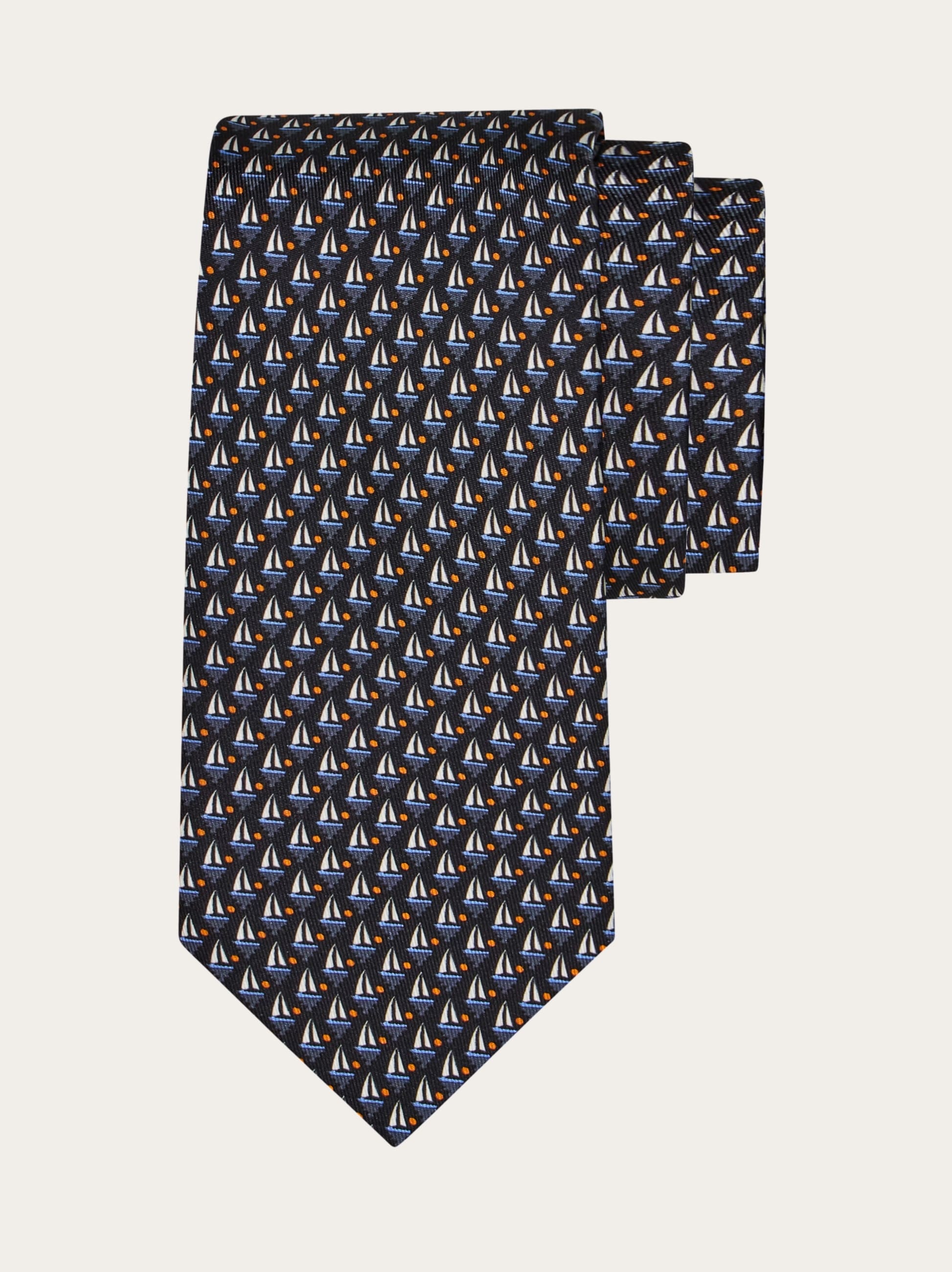 Sailing boat print silk tie