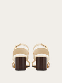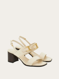 Keep it cool when the temperatures soar in this contemporary take on a Ferragamo classic. Block heel sandal made of soft, smooth Italian leather. The wide straps across the toe and instep are supported by a slim ankle strap with golden buckle for a secure fit, while the golden Gancio adds a touch of class. - Composition: calfskin - Made in ITALY - Product code: 01G963 769668