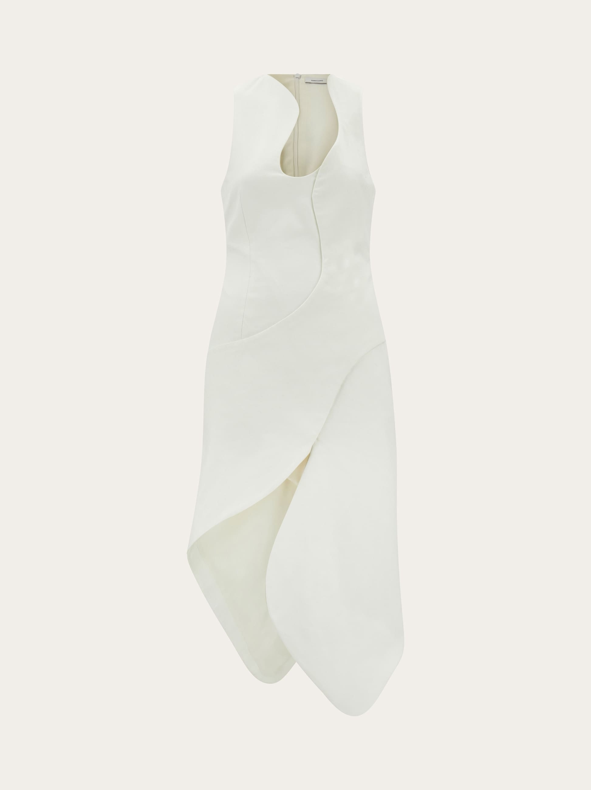 Wearable art. The contemporary sensuality of this dress is created by a series of curves that flatter and enhance the female form. Made of pure stretch viscose, the smooth fabric fastens at the back via a hidden zip. The wave neckline lends itself to avant garde jeweler, perfect for cocktail hour. - Composition: 97% viscose, 3% elastane - Model measurements: Height 5' 10"/178 cm; Bust 31½ "/80 cm; Waist 23½"/60 cm; Hips 34 "/88 cm - Model wearing: 38 - Made in ITALY - Product code: 13G865 783811
