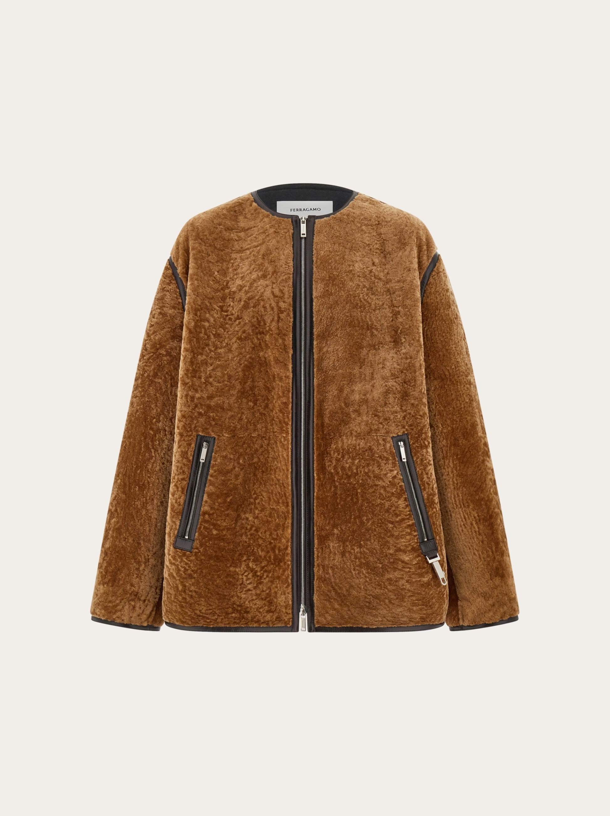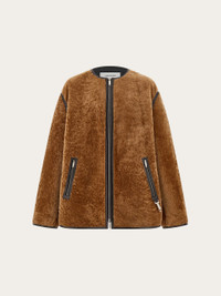 The minimal silhouette of this cozy new blouson allows the rich astrakhan-effect shearling to take the spotlight. Inspired by the military jacket warmer, the cut features leather trims around the seams, pockets and central zip with leather toggles on the cuffs. A small custom tag is placed at the back of the neck. - Composition: shearling - Made in ITALY - Product code: 145149 788356