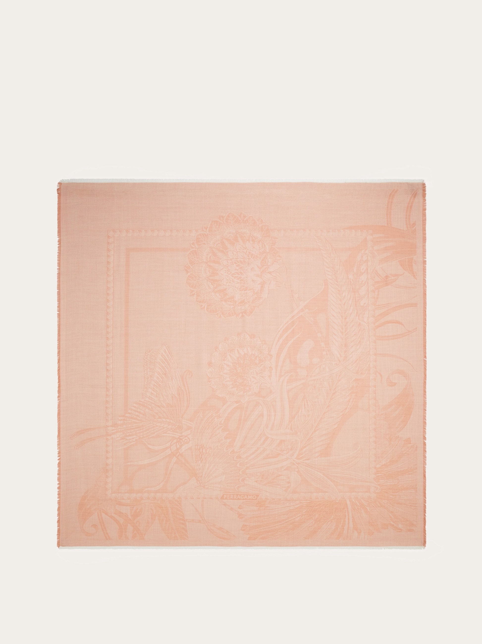 Luminous, featherlight silk and warm, cozy cashmere come together to create this chic new stole. The large dimensions are the perfect backdrop for the jacquard workmanship used to create the Giada pattern, a motif made up of butterflies and dancing flowers set on a geometric frame. - length 55.1 IN width 55.1 IN - Composition: 46% silk, 40% wool, 14% cashmere - Made in ITALY - Product code: 321166 785350