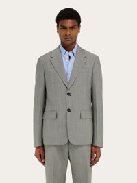 A cut above: single breasted wool and mohair tailored jacket, with wide lapels and flap pockets at the hips. Diagonal eyelets with contrasting stitching confirm a unique style with two back vents for a most flattering fit. Partially lined with internal pockets. Pair with the matching trouser for a current take on business wear. - Composition: 87% pure virgin wool, 13% mohair - Made in ITALY - Product code: 144338 780850